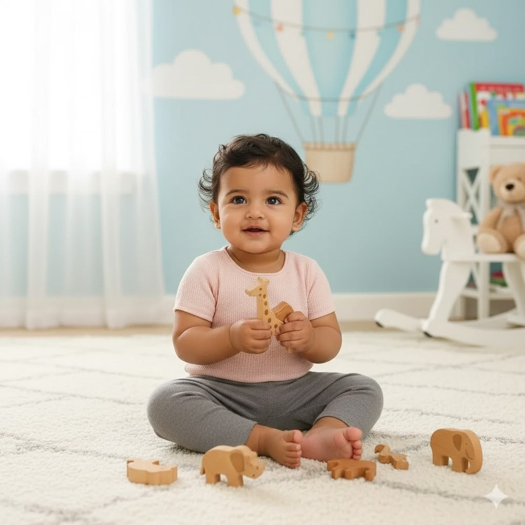 - Wooden books can be placed on the side of the baby when the baby is on their back aiding in strengthen
