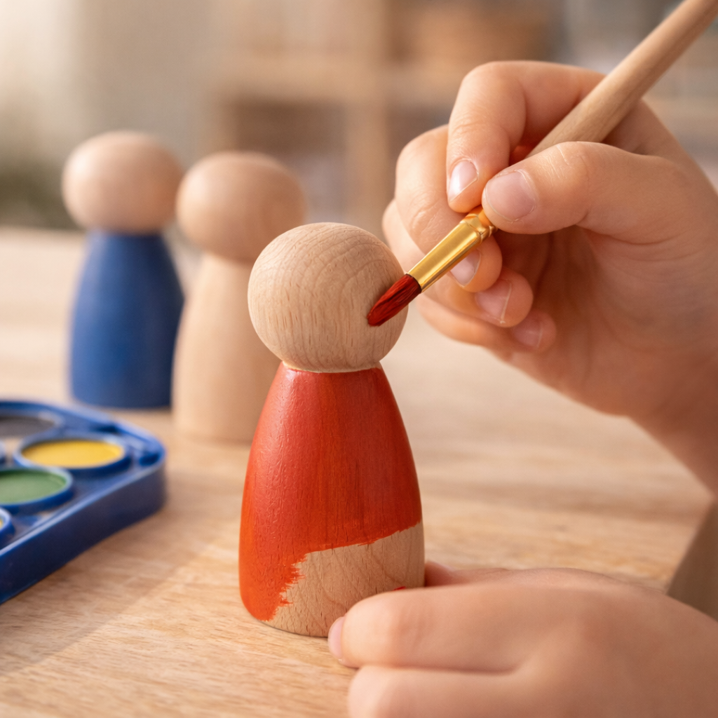 Children can paint, decorate, and role-play with wooden peg dolls, boosting imagination, storytelling, and self-expression.